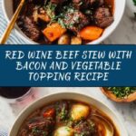 Making this Red Wine Beef Stew with Bacon and Vegetable Topping Recipe is like inviting a bit of warmth and joy into your kitchen. With its generous portions of tender beef, flavorful wine-infused sauce, and the irresistible topping of caramelized bacon and vegetables, it’s a dish that promises comfort and sophistication all in one bowl. I can’t wait for you to give it a try and savor every delicious moment!