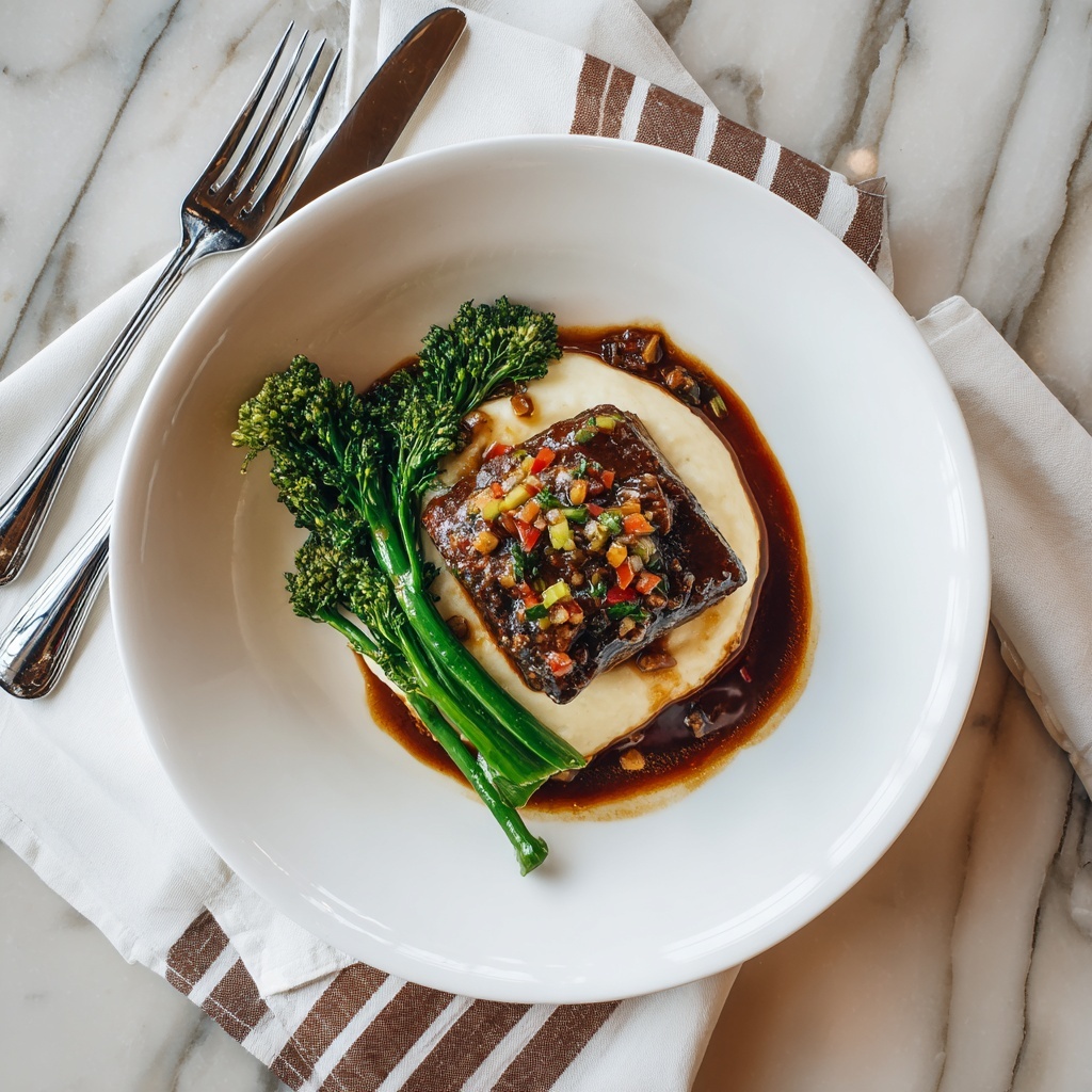 For a special occasion, serve the ribs on a large wooden board with rustic mashed potato dollops, scattered thyme sprigs, and roasted baby carrots or pearl onions alongside. Another fun twist is plating them with buttered polenta or creamy risotto to give a different texture but still complement the sauce beautifully.