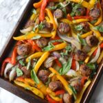This Sausage and Peppers Recipe is a flavorful and easy-to-make dish featuring precooked Italian chicken or turkey sausage roasted with colorful bell peppers, onions, and aromatic herbs. Perfect for a quick weeknight dinner, the dish offers a delicious balance of savory sausage and tender roasted vegetables with a hint of spice.