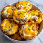 Delight in these Savory Breakfast McGriddle Bites, a perfect blend of fluffy buttermilk batter, flavorful breakfast sausage, sharp cheddar cheese, and fresh chives. Baked to golden perfection in a mini muffin tin, these bite-sized treats offer a convenient and delicious start to your day, especially when paired with a drizzle of maple syrup for a classic sweet-savory balance.