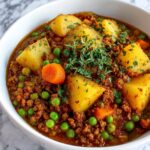 A comforting and hearty Shepherd’s Pie Soup that combines the classic flavors of shepherd’s pie into a warm, easy-to-make soup. Ground beef, aromatic vegetables, and rich beef broth blend seamlessly with creamy mashed potatoes on top, making it the perfect meal for chilly days.