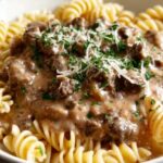This Slow Cooker Creamy Garlic Beef Pasta is a hearty and comforting dish perfect for busy days. Tender beef stew meat is seared and then slow-cooked with savory garlic, beef broth, and Italian seasonings. Finished with rich heavy cream and Parmesan cheese, this comforting pasta recipe delivers creamy, flavorful results with minimal hands-on time, ideal for an effortless family meal.