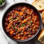 This chili pairs perfectly with crusty baguette slices that help soak up every last bit of sauce, making it an ideal comfort food combo. For a more substantial meal, consider serving it alongside a crisp green salad or some steamed rice to balance out the spices and textures.