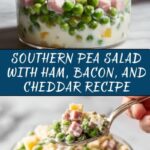 A creamy, flavorful Southern Pea Salad combining sweet peas, ham, bacon, green onions, and cheddar cheese, all tossed in a tangy mayo and sour cream dressing with garlic and spices. Perfect as a refreshing side dish for picnics, potlucks, or family gatherings.