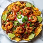 These Spicy Cajun Crawfish Nachos are a flavorful twist on classic nachos, featuring seasoned crawfish tails baked with a blend of cheddar and Monterey Jack cheeses atop crispy tortilla chips. Topped with fresh green onions, tomatoes, cilantro, jalapeños, and served with a lime wedge and sour cream, this dish offers a perfect balance of spice, zest, and creaminess—ideal for game days, parties, or casual snacking.