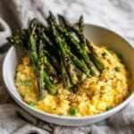 This Spring Asparagus Risotto is a creamy, comforting Italian main course featuring tender Arborio rice cooked slowly with fresh asparagus, tangy lemon, and Parmesan cheese. Perfectly balanced with bright lemon zest and juice, and a subtle savory note from garlic and onion, this dish highlights the vibrant flavors of spring in a rich, satisfying meal.