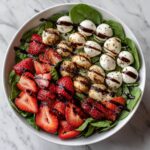 A vibrant and refreshing Strawberry Caprese Salad that combines juicy fresh strawberries, cherry tomatoes, and creamy mozzarella balls, all tossed with fragrant basil and drizzled with balsamic glaze for a perfect balance of sweet and savory flavors. This easy no-cook Italian-inspired salad makes a delicious light lunch or a stunning side dish for any meal.