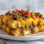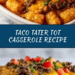 This Taco Tater Tot Casserole is a comforting and hearty dish perfect for family dinners. Ground beef is seasoned with taco spices and combined with diced tomatoes, cheddar cheese, and sour cream, then topped with crispy tater tots and baked until bubbly and golden. It’s a flavorful twist on traditional casseroles that delivers all the tasty elements of a taco in a satisfying baked meal.