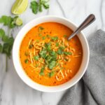 Turn off the heat and stir in the juice of one lime, chopped cilantro, and basil leaves if you have them. These fresh ingredients lift the entire soup, adding brightness and herbal notes. Adjust the salt and pepper to your taste for the perfect balance.