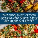 Thai Spicy Basil Chicken Skewers with Cashew Sauce and Gremolata Recipe