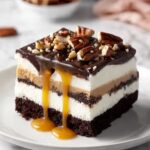 Turtle Lush is a decadent no-bake layered dessert featuring a crunchy Oreo cookie crust, creamy sweetened cream cheese and whipped topping layer, smooth chocolate pudding, and a luscious topping of caramel sauce, chocolate syrup, and pecans. This indulgent treat is perfect for parties or any occasion when you want to impress with minimal effort and maximum flavor.