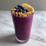 4. Serve: Pour the smoothie into serving glasses. Optionally, garnish with extra blueberries, a sprinkle of chia seeds, or chopped nuts to add texture and visual appeal.