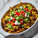 Grab a 9×13 inch baking dish, then start building your layers. Begin with half of the bag of Fritos corn chips for a crunchy base. Spoon the beef mixture evenly over the chips, then sprinkle with shredded cheese. Repeat the layers if you desire extra crunch and cheesiness, but the classic layering works wonderfully as is.