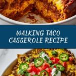 If you love the irresistible crunch and bold flavors of a classic taco but want a warm, comforting twist, this Walking Taco Casserole Recipe is exactly what you need. It brilliantly captures all the fun of a walking taco in an easy-to-make casserole that’s perfect for family dinners or casual get-togethers. Layered with seasoned ground beef, creamy cheeses, Fritos for crunch, and topped off with fresh veggies and zesty salsa, this dish delivers a fiesta of textures and flavors in every bite. Get ready to fall in love with taco night all over again!