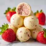 Delight in these luscious White Chocolate Strawberry Truffles, a no-bake dessert featuring creamy white chocolate blended with tangy freeze-dried strawberries. These elegant treats are perfect for holidays or special occasions, offering a smooth, rich texture and a burst of strawberry flavor, finished with a dusting of powdered sugar and optional strawberry garnish.